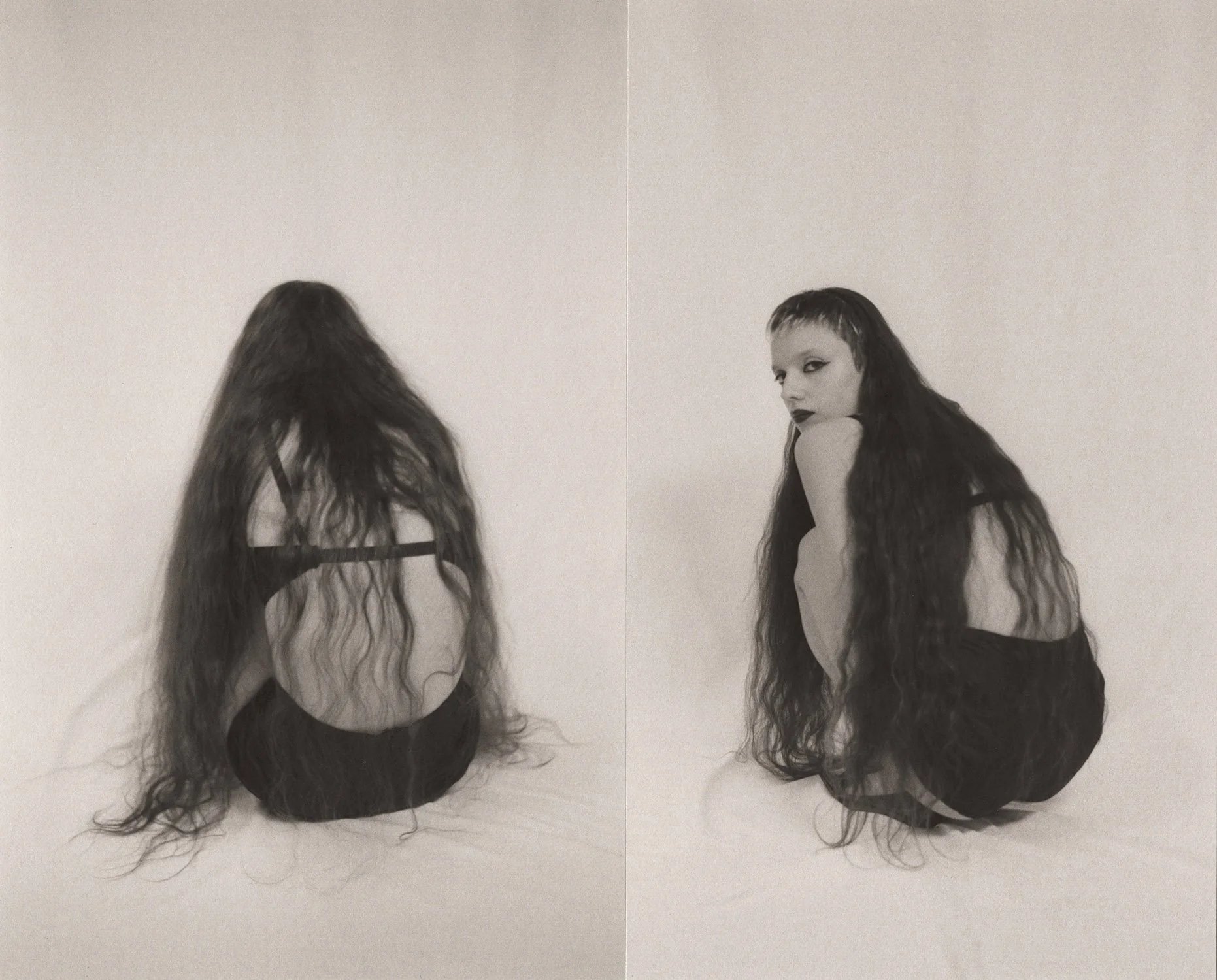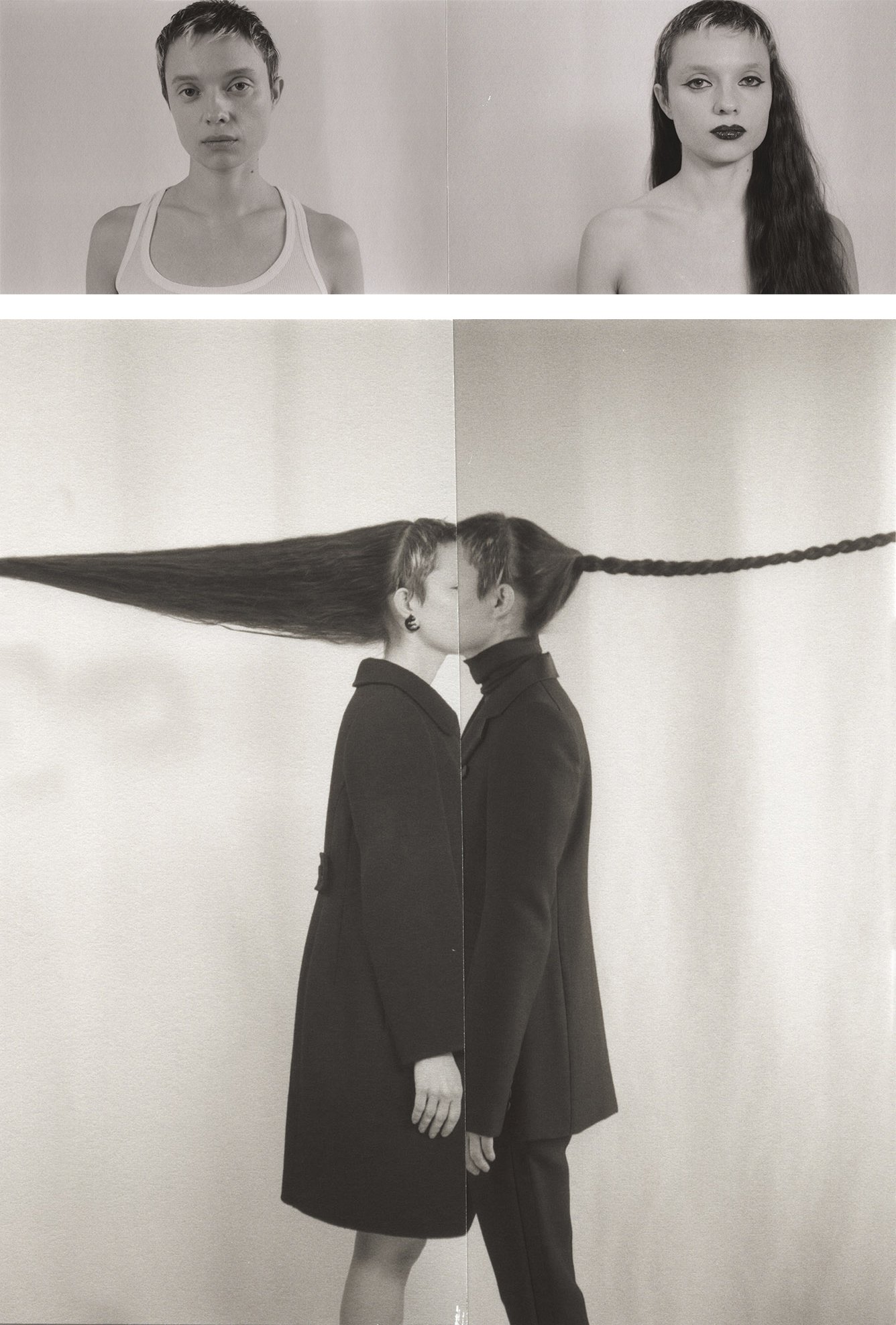 I was inspired to create these photographs and collages after meeting Sara on a previous shoot. Her half boy half girl, super short and extremely long hair made me think of the push and pull between the feminine and the masculine. Without her this shoot would not exist and it was a perfect addition to the 2022 edition of PAN relating to gender identity.